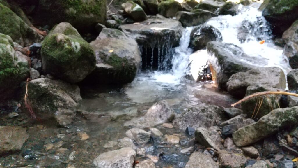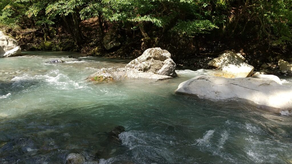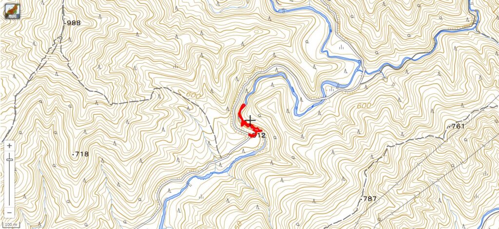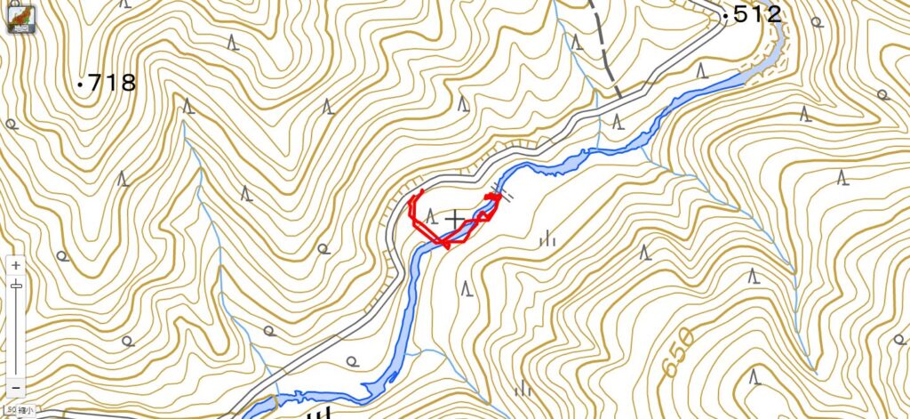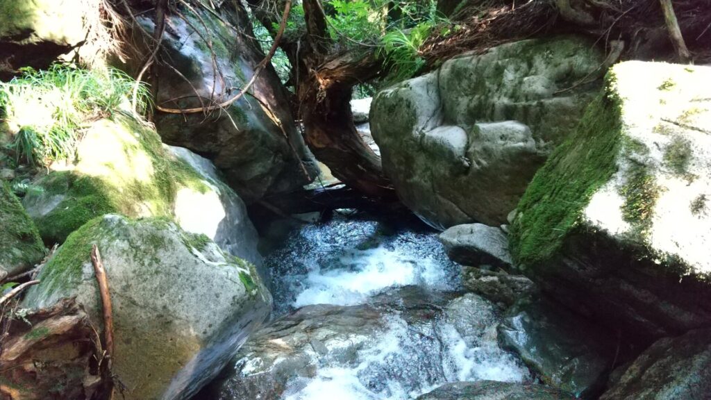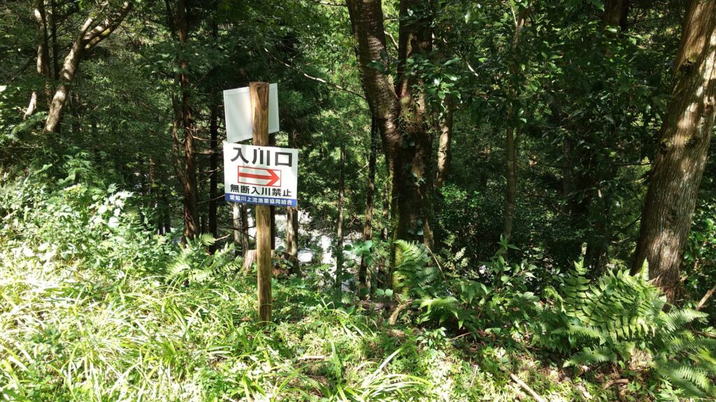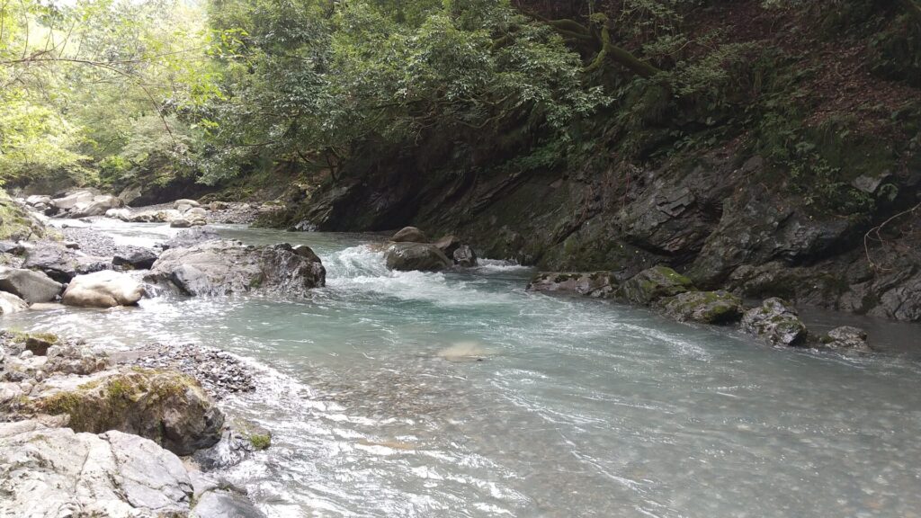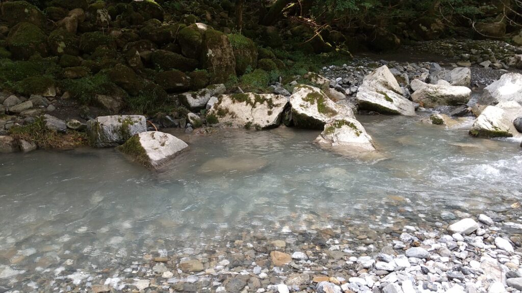 背後に気配を感じて振り返ると、遠巻きに上流側から先行者が下ってきていた。 軽く会釈して降りて行った。 入川口の少し手前の駐車場に止まっていた車だな。