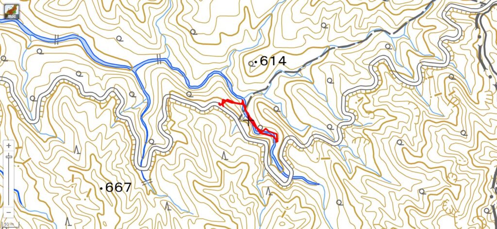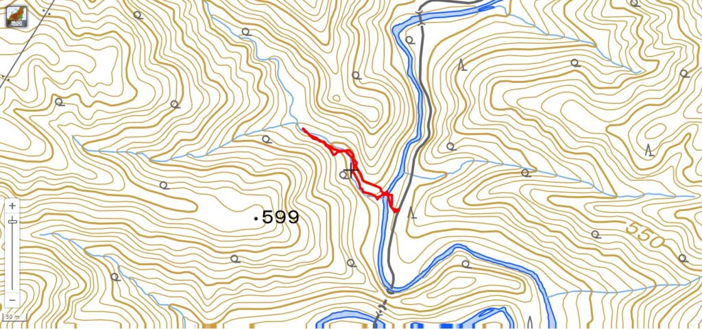 入渓してまもなく深い淵を持つ滝がある。 その他には小さな落ち込みも少ないので、解禁初期に釣行すべき。 日にちが経つと荒れてきて釣れないと思う。