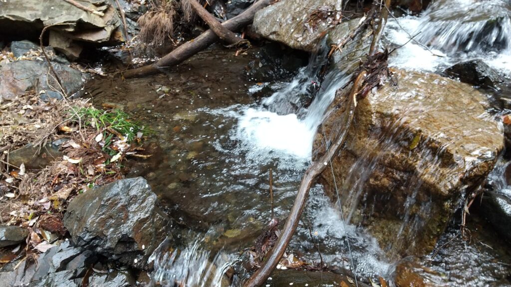 効率を考えて入渓すぐの小滝にポイントを絞って釣ることにする。