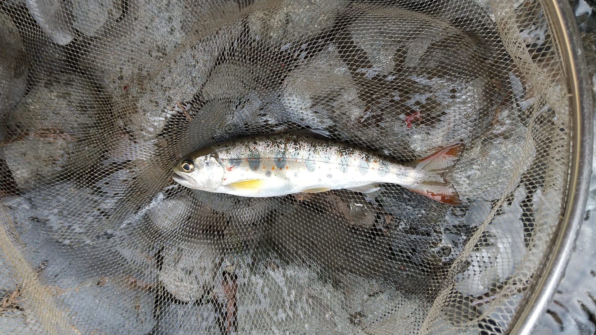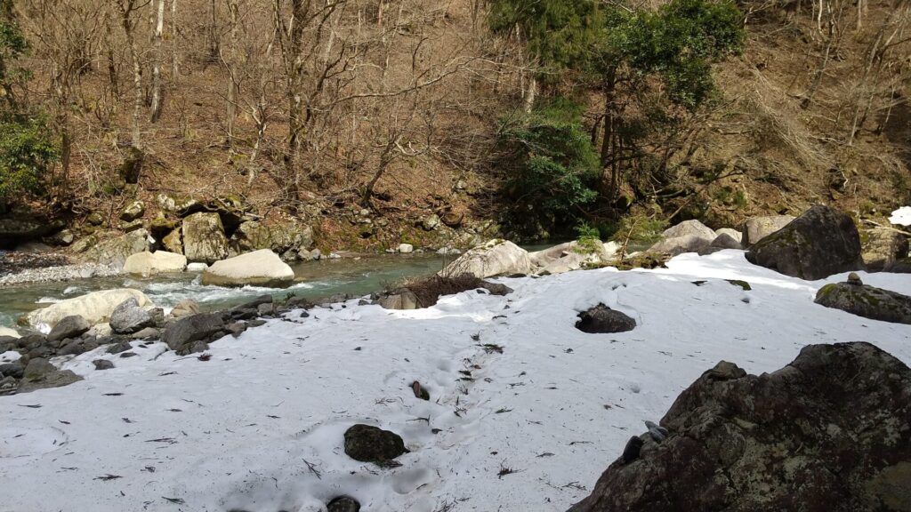 雪で河原を移動しにくいので同じポイントで粘りましたが以降反応な無しでした。ミミズの餌が良さそうな気がしたのですが、車まで戻るのも面倒なので川虫で続けました。