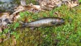 3つ目の堰堤ではカワゲラの餌で 2尾、4つ目の堰堤でカワゲラの餌で 1尾掛けて午前の部を終えた。これらの3尾は餌を飲み込んでいて針外しに苦労した。