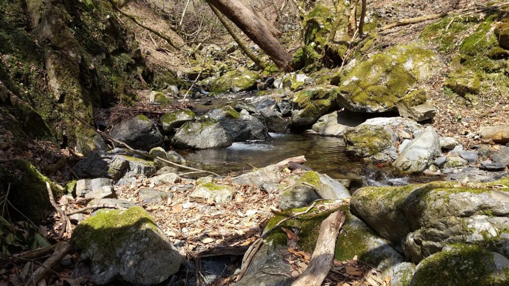 前回 釣行20250325 では御池川本流でも竿を出してみたが、成魚放流が釣れてがっかりだったので今回は天然物を狙うことにした。晴れの天気予報だが最寄りの観測点でも最高気温が15℃前後(山中ではこれよりも 5℃程度低い)で風も強い予報なので入渓しやすく何かあっても退避しやすい谷を選んでみた。