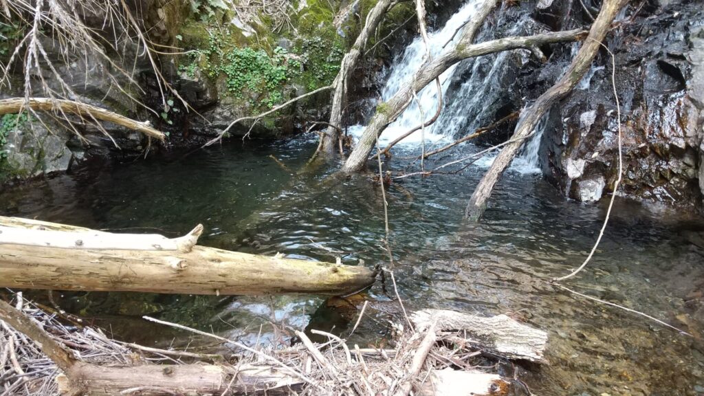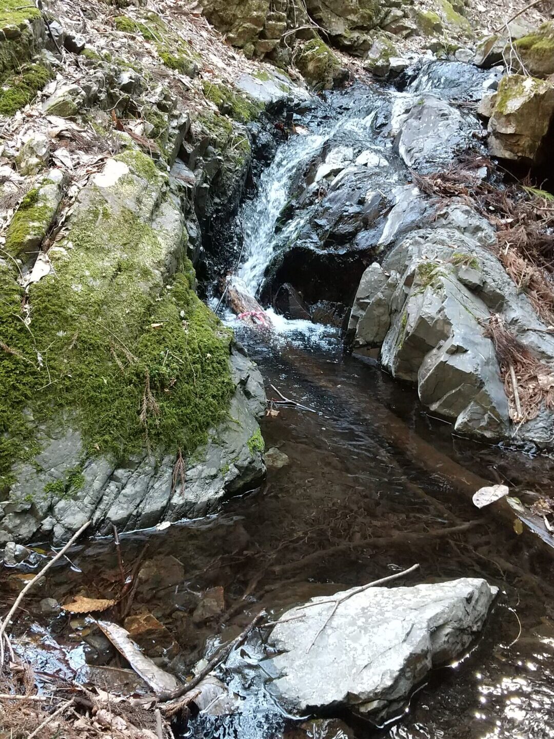 背丈ほどの落差の滝で掛けることができたが水底の枝にからんだのか仕掛けがからんでバラしてしまった。